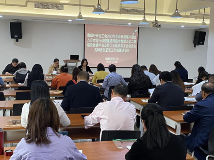 4月 12日上午,南昌经开区工会在区职工之家八楼会议室召开2023年全面开展集中建会入会攻坚行动暨推进南昌市智慧工会二期建设数据平台基层工会组织和工会会员实名制信息采录工作部署动员会。临空经济区工会、各镇(街道、管理处)工会联合会,区教育行业工会联合会、金开集团工会联合会、部分规模以上企业工会等四十余家单位的工会主席和工会干部参加了会议。