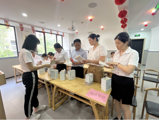 下午2时许,活动正式开始,在翠园社区职工书屋,职工们分别挑选了感兴趣的书籍,进行了集体阅读,通过书籍浸润内心,凝聚工作和生活的力量。集体阅读结束后,职工们拿出了自己精心准备的书籍盲盒进行了置换,每个盲盒都有一本好书和书籍主人的留言,通过交换一本家中闲置的书籍,用一本书,交换一段故事,促进知识和思想的交流。