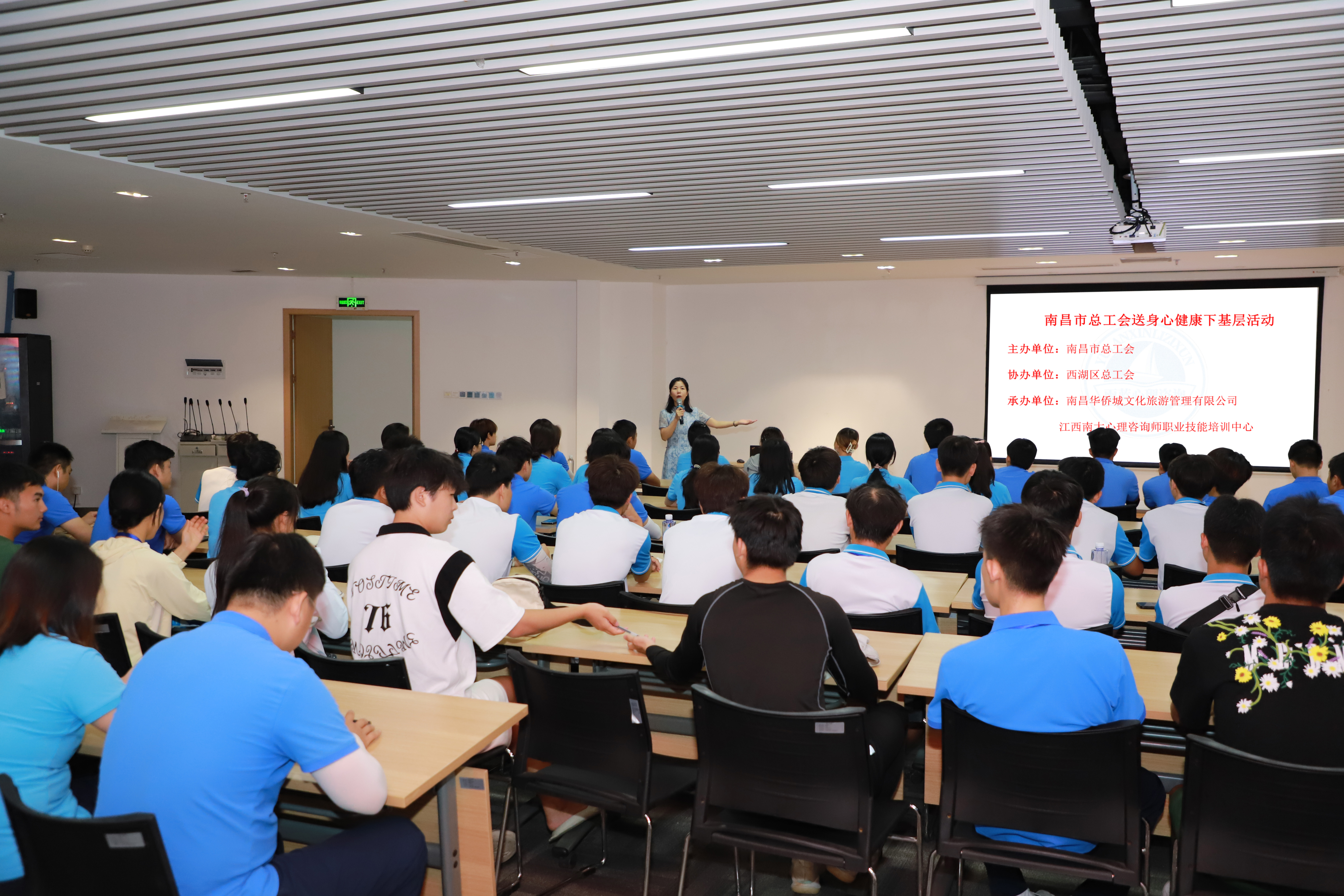 为切实把关爱落实到每一位员工上,进一步提升企业健康管理机制,保障员工身心健康,快速建立创新科技人才队伍,2023年7月19,由南昌市总工会主办,西湖区总工会协办,南昌华侨城文化旅游管理有限公司、江西南大心理咨询师职业技能培训中心承办的送身心健康服务下基层活动顺利开展了。