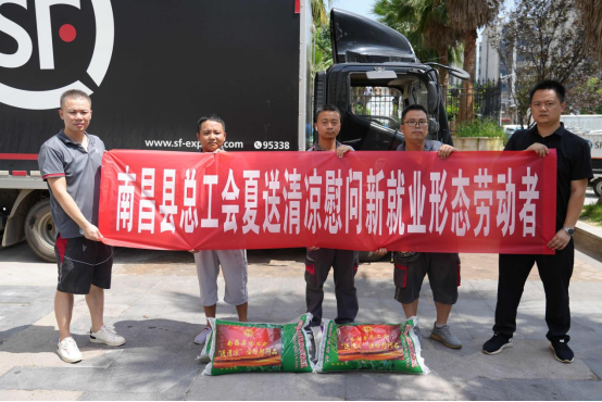 南昌县总工会开展新就业形态劳动者入会宣传暨“夏送清凉”活动,不仅为“一线小哥”们送去一丝清凉,也让他们深切感受到了工会“娘家人”的关心和关爱,极大地鼓舞了新就业群体的工作热情。大家纷纷表示,要将党和政府以及工会组织的关心转化为工作的动力,坚守岗位,奋勇争先,战高温、斗酷暑、保安全、促生产,优质高效地提供服务,为南昌县经济发展贡献力量。