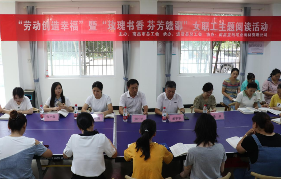 8月9日下午,进贤县总工会在南昌蓝珀笔业画材有限公司开展了一场“劳动创造幸福”暨“玫瑰书香 芬芳赣鄱”女职工主题阅读活动。35名女职工围坐一起,分享彼此阅读体会。