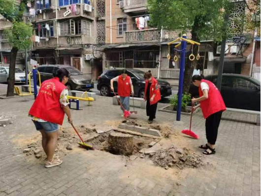 活动现场,工会干部和社区工作者手持清扫工具,对社区道路、公共休闲场所、草地、绿化带的白色垃圾、生活废弃物、建筑泥土等进行了全面清扫清理,对居民楼内的自行车、电动车规范摆放,充分发挥了不怕脏、不怕累的服务精神,社区环境面貌焕然一新,获得了居民们的点赞与支持。