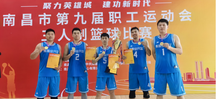 由南昌金开集团有限公司、南昌欧菲光电技术有限公司联合组成的南昌经开区三人篮球代表队,在本次篮球比赛中连克强敌,通过全队运动员的团结协作、奋力拼搏,一路高歌猛进,经过三天的激烈角逐,在全市各代表队中脱颖而出,昂首挺进决赛,最终以21比17的比分战胜西湖区代表队,勇夺南昌市第九届职工运动会三人制篮球比赛冠军,并创造了南昌经开区代表队历史最好成绩。