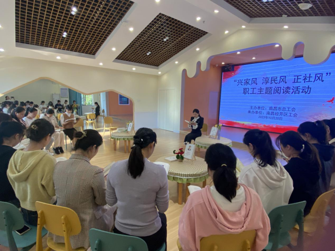 10月20日,由南昌市总工会主办,经开区工会协办的“兴家风 淳民风 正社风”职工主题阅读活动在经开区新城幼儿园开展,活动分为“经典诵读”“分享交流 ”和“阅读总结”三个环节展开。