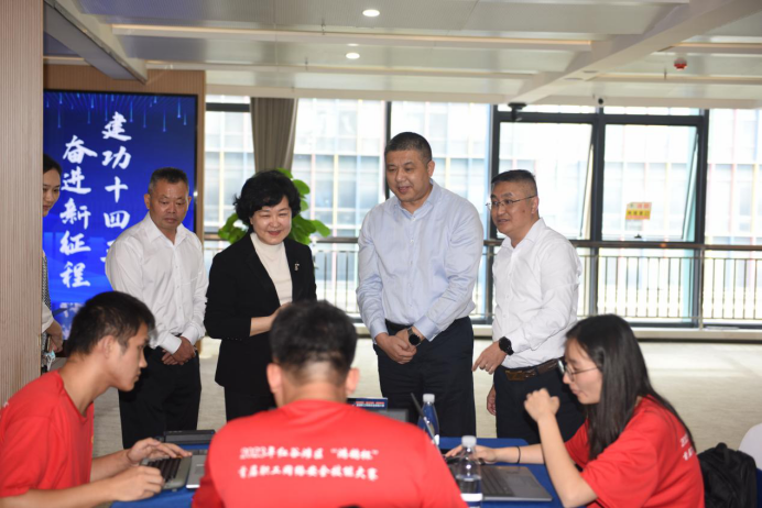 为大力弘扬劳模精神、劳动精神、工匠精神,切实提升网络安全领域产业工人的劳动素质和技能水平。10月28日,由区总工会主办的红谷滩区2023年“鸿鹄杯”首届职工网络安全技能竞赛启动仪式在慧谷产业园隆重举行。市总工会党组成员、副主席邓林和,红谷滩区人大常委会党组成员、副主任、区总工会党组书记、主席王瑞芳等出席,裁判员和参赛选手代表共计100余人参加了启动仪式。