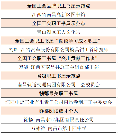 近日,南昌4家单位职工书屋和4名个人荣获国家级、省级荣誉。