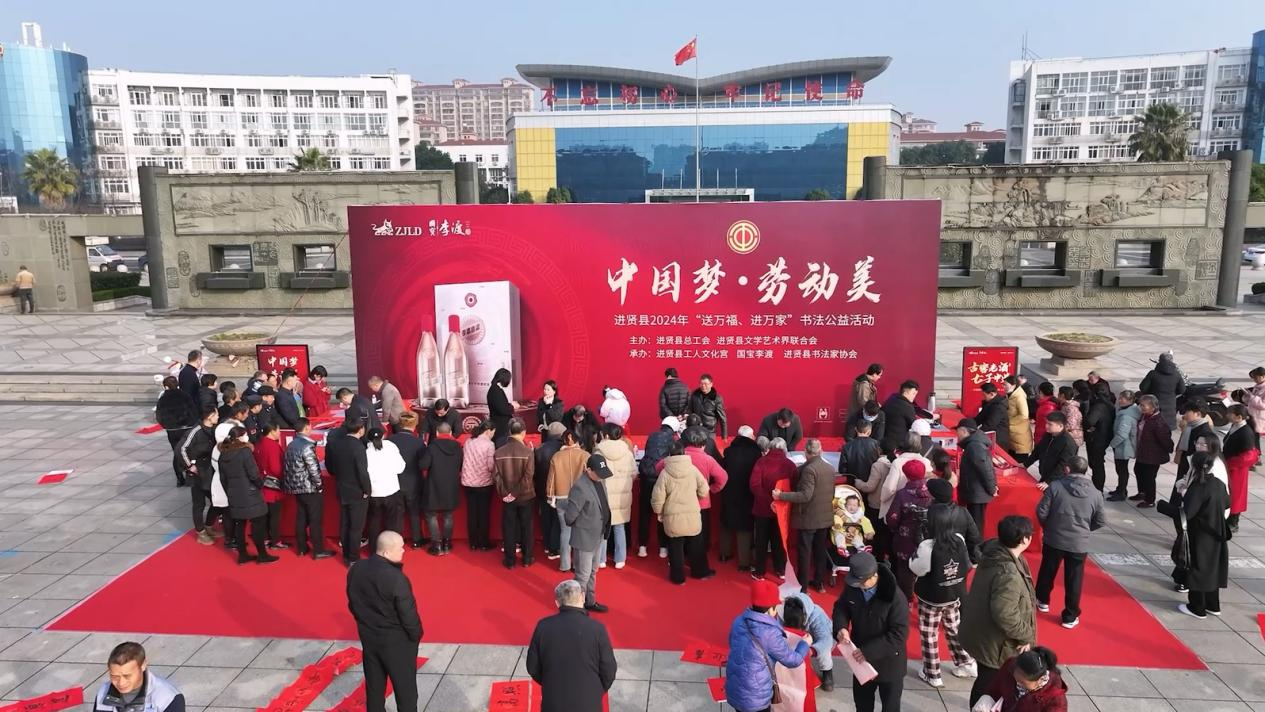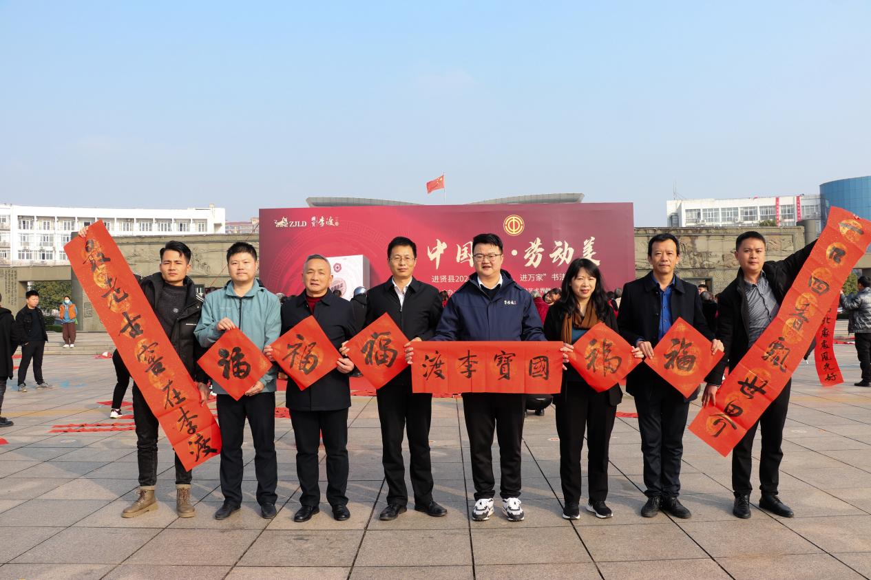 妙笔生花添瑞气,翰墨留香迎新春。为深入学习贯彻落实党的二十大精神,弘扬中华优秀传统文化,进一步丰富我县广大职工群众文化生活,在新春佳节到来之际,1月16日上午,由县总工会、县文学艺术界联合会主办,县工人文化宫、县书法家协会、李渡酒业承办的“中国梦 劳动美”进贤县2024年“送万福、进万家”书法家公益活动在县政府广场举办。县委常委、宣传部长吴庆和出席活动,县总工会党组副书记、分管日常工作的副主席陶致伟,县委宣传部一级主任科员、县文联主席颜爱英等陪同参加。