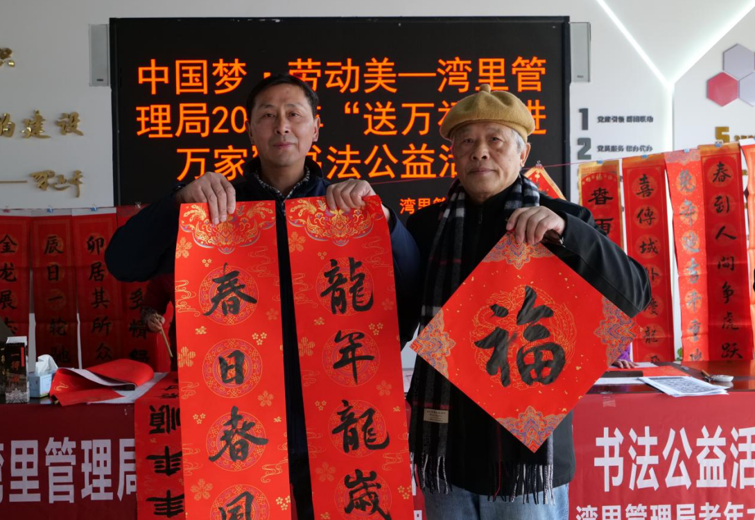 岁末天寒、春节将至。为大力弘扬中华优秀传统文化,展现新时代职工群众和书法爱好者的新作为新形象,营造欢乐吉祥、温暖和顺的节日氛围。2024年1月29日上午,湾里管理局工会工委联合局老年大学前往罗亭工业园开展“中国梦•劳动美”--湾里管理局2024年“送万福、进万家”书法公益活动。