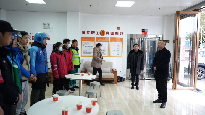 在幸福街道工会驿站,刘丹一行对困难职工、一线职工及新就业形态劳动者代表进行集中慰问,提前为大家送上春节祝福,嘱咐他们在辛苦工作的同时,要注意身体健康,同时感谢他们为湾里发展贡献的力量。