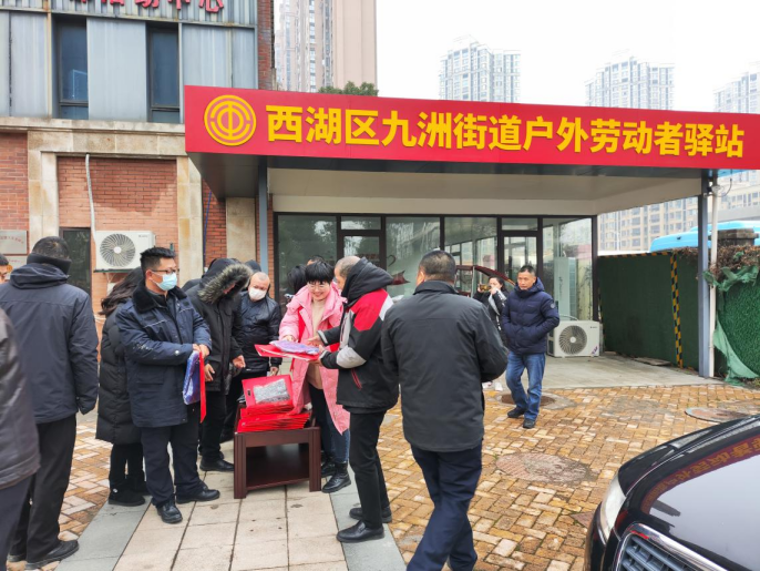 天寒地冻,为充分体现工会驿站的“小阵地、大服务”作用,进一步关心关爱新业态户外劳动者,提高冬日生活“温度”,春节期间,九洲街道工会联合会在春熙社区户外劳动者驿站开展“冬送温暖,情暖人心”活动。