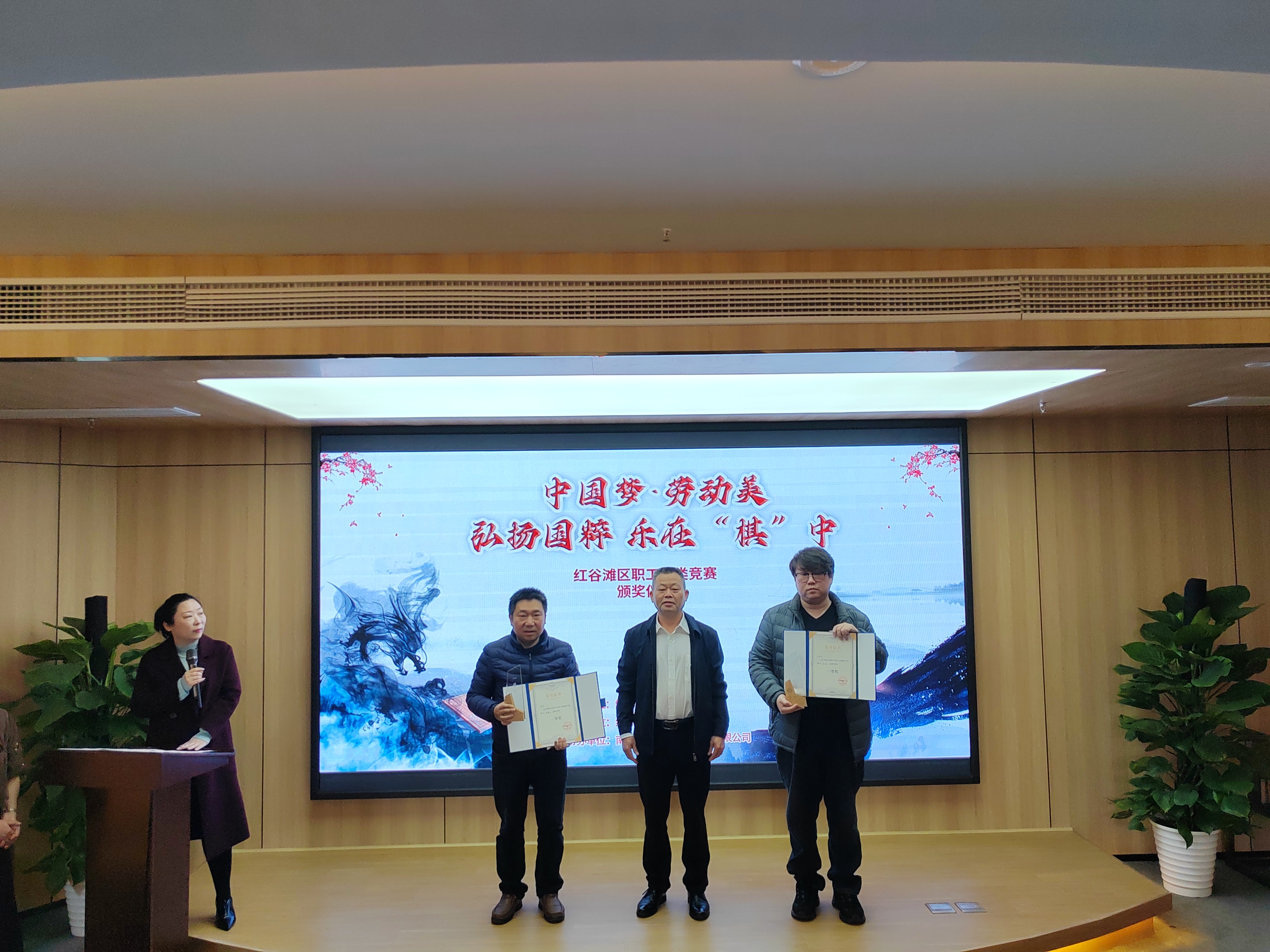 华润新能源投资有限公司江西分公司邢学振、流湖镇周建火、南昌红润项目管理有限公司雷智获得中国象棋比赛三等奖;