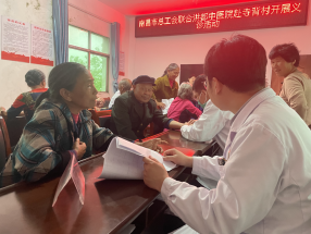 4月16日上午,南昌市总工会驻村工作队联合洪都中医院在七里乡寺背村开展“情系群众·暖心义诊”活动,为全村300多名村民进行免费义诊,把“健康直通车”开到村民家门口。