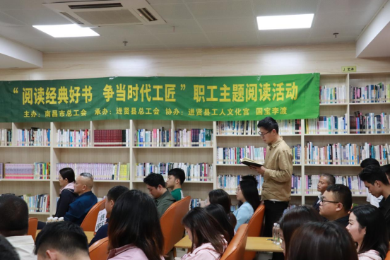 4月25日上午由南昌市总工会主办,进贤县总工会承办,县工人文化宫、江西李渡酒业协办的“阅读经典好书 争当时代工匠”职工主题阅读活动,在县工人文化宫8楼职工书屋成功举办。