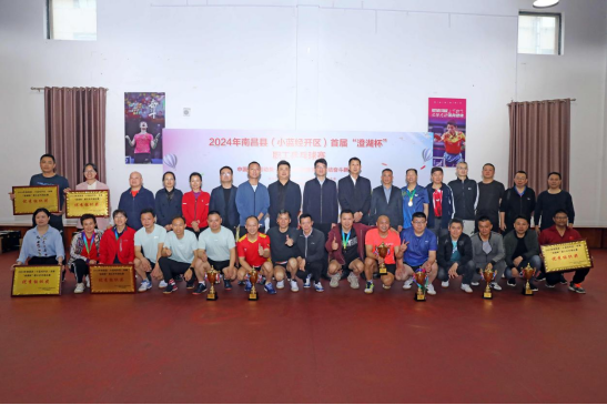 4月21日,2024年南昌县(小蓝经开区)首届“澄湖杯”职工乒乓球比赛圆满结束。本届比赛活动得到了辖区企事业单位职工积极响应,全县共48家企事业单位,300名职工参与。