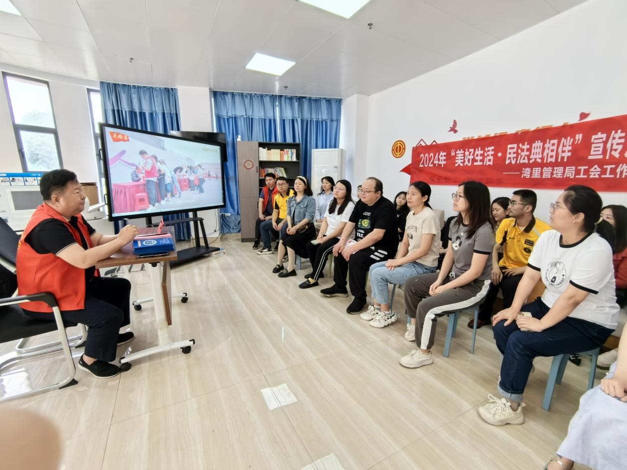 此外,活动还通过电子宣传屏进行集中展播2024年民法典宣传月短视频,发放《民法典宣传手册》等普法宣传资料80余份。本次“民法典宣传月”期间,湾里管理局工会工作结合职工群众实际法律需求,多载体多渠道让民法典走进职工身边、走进职工心里,做到法治宣传有热度、法律服务有温度,让更多职工知法、懂法、守法、用法。