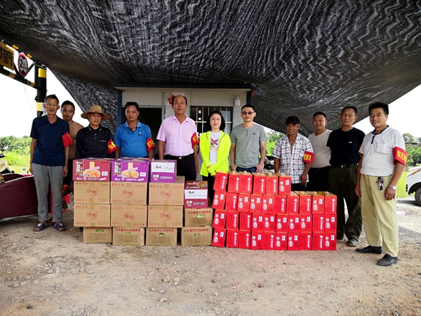 2020年7月19日上午,经开区工会一行四人,前往瓜州联圩五个点位走访慰问。慰问组为一线抗洪的干部群众送去了西瓜、牛奶、八宝粥、方便面等慰问品,并代表区组社部向值守在防汛抗洪一线的干部群众表示诚挚的慰问,感谢他们不畏高温酷暑、坚守岗位、辛勤付出、守护圩堤安全,保障人民群众生命财产安全。
