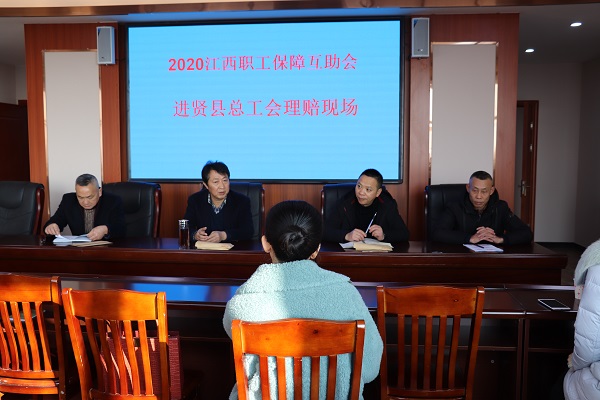 2020年元月8日,进贤县总工会职工互助保障中心为3名特种疾病和2名意外伤害职工进行现场理赔,县人大常委会副主任、县总工会主席焦官印等领导在现场分别对获赔职工致以问候和祝福,并送上理赔金,送去工会组织的关怀。