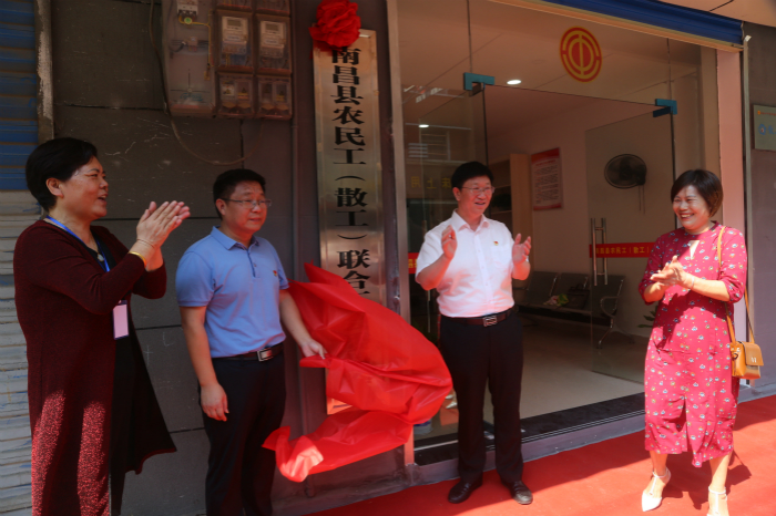 9月30日上午,南昌县农民工(散工)联合工会委员会揭牌仪式在莲塘镇澄湖东路三轮车货运市场举行。南昌县总工会人大常委会副主任、县总工会主席吴文卫为仪式揭牌,县总工会相关负责同志、社区工作人员以及周边农民工(散工)40余人参加活动。