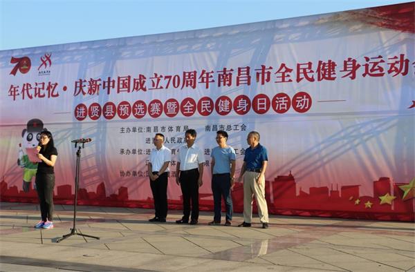 激情燃烧的盛夏时节,清风微动,晨光微煦。8月4日清晨,由南昌市体育局、南昌市总工会、进贤县人民政府主办,进贤县教体局、进贤县总工会、江西汗青体育发展有限公司承办,江西李渡酒业有限公司协办的年代记忆·庆新中国成立70周年南昌市全民健身预选赛暨全民健身日活动在进贤县人民广场举行。县人大副主任、县总工会主席焦官印出席开幕式并宣布开幕。县总工会常务副主席曾志华,县政府办、县教体局相关领导也出席了开幕式。