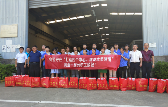 7月31日,烈日炎炎,区总工会常务副主席王仪吉、副主席黄荣广等走访慰问了奋战在“美我湾里、净我家园”高温一线的职工,并送上防暑降温物品。