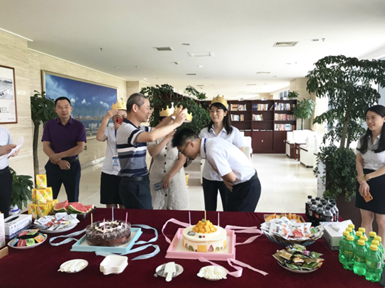 为表达对员工的亲切关怀,增强员工对公司的认同感和归属感,体现“快乐工作 健康生活 幸福成长”的企业价值导向,7月19日上午,市政资产公司工会举办首次职工集体生日会,市政资产党委书记、董事长张马安携部分班子成员出席,并为寿星们送上祝福。