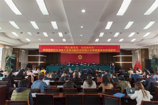 4月12日,南昌市教科文卫体工会“践行新思想•奋进新时代”助力脱贫攻坚职工志愿服务活动启动仪式在市总25楼会议室举行。市总工会副主席邹循泷出席启动仪式并讲话,市文明办副主任李学聪出席启动仪式并为志愿服务队授旗,启动仪式由市总党组成员、市教科文卫体工会主席钟东主持。
