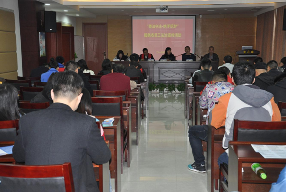 3月28日,由青山湖区总工会、江西师范大学政法系师生联合组成的“尊法守法·携手筑梦”服务农民工法治宣传行动宣讲服务队来到江西高新技术产业园区为农民工开展法制宣讲。活动中,工作人员现场派发《常用法律知识问答》、《农民工法律援助手册》等宣传册,并提供法律咨询。来自江西师范大学的师生和我区法律援助师等多人为现场数十名农民工解答了30多个劳动纠纷方面的问题。此次面对面服务活动,使广大农民工现场学习到法律知识,提高了农民工的法律意识和法律素质,提升农民工依法办事和依法维权能力。让广大农民感受到了工会“娘家人”的温暖,