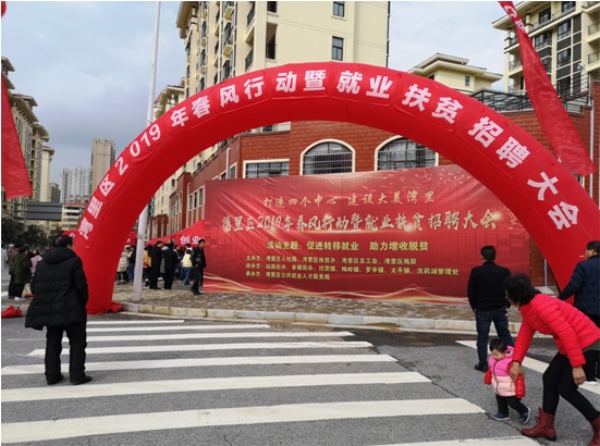 2月28日,由湾里区总工会联合区人社局、区扶贫办、区残联主办,湾里区公共就业人才服务局承办的“2019年春风行动暨就业扶贫招聘大会”在湾里区就业局大厅门口盛大开幕,湾里区常务副区长熊和清,劳动局局长袁松孙、湾里区总工会常务副主席王仪吉莅临指导。湾里区总工会全体机关干部积极参与,此次招聘持续一个月,以“为促进转移就业,助力增收脱贫”为主题,突破以往的单纯招聘,将活动范围扩大为“增招聘、引创业、推技能、保民生”,现场由“企业招聘区、创业项目区、政策服务区”组成,为求职者提供一站式服务。