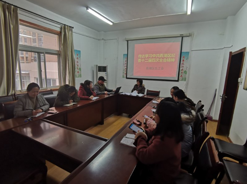 2月14日下午,西湖区总工会在群团会议室召开专题学习会议,传达学习区纪委十二届四次全会精神,区总领导班子、全体党员干部参加会议。