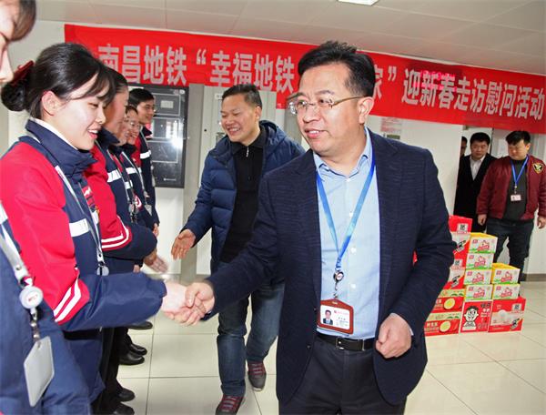 2月2日上午,南昌轨道交通集团党委书记、董事长***来到地铁1号线八一馆站、2号线南昌西站,看望慰问奋战在春运一线的运营员工,并致以诚挚的节日问候和祝福,集团副总经理贺斯进,集团工会、运营分公司相关人员陪同。