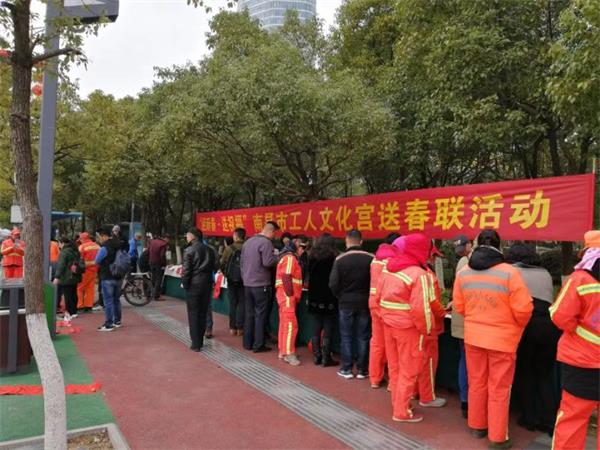 在新春佳节即将到来之际,为把党的关怀和温暖、把新春美好祝福送进千家万户。1月26日下午,南昌市工人文化宫邀请了省、市书法家和职工书法爱好者在市总工会大楼旁开展了“送新春 送祝福”免费送春联活动。