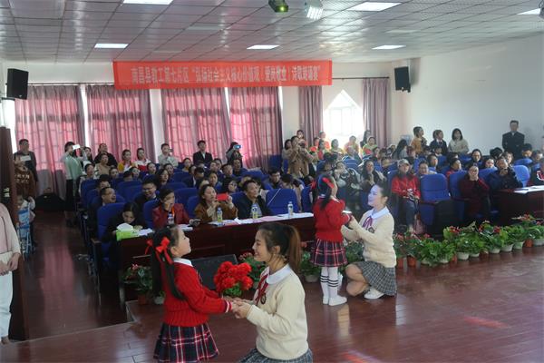 11月27日下午,南昌县教工第七片区“弘扬社会主义核心价值观(爱岗敬业)诗歌朗诵赛”在县特教学校举行,大赛由南昌县教育工会承办,得到南昌县总工会大力支持。来自县科教体局、县特校、县一幼等11个单位8个节目登台亮相,共计120余名演员,300余名观众参加比赛。
