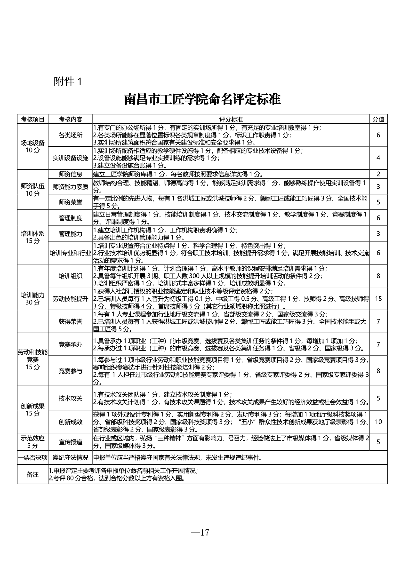 (三)教师授课补助。全国技术能手、教授(正高)1000元/课时,江西省优秀高技能人才(能工巧匠)、副教授(副高)500元/课时,南昌市“洪城工匠”、讲师(工程师)300元/课时。