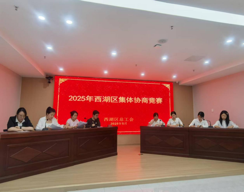 集体协商是民主管理的重要载体,是维护职工合法权益、促进企业稳健发展的有力保障,也是工会工作的重要组成部分。5月22日,西湖区2025年度工会集体协商竞赛在区党群人才服务中心成功举办。区总工会、区人社局劳动人事争议仲裁院及江西马力智能科技有限公司相关负责人出席。来自各街道的集体协商指导员、工会干部、企业管理人员、职工代表组成十支代表队参赛。