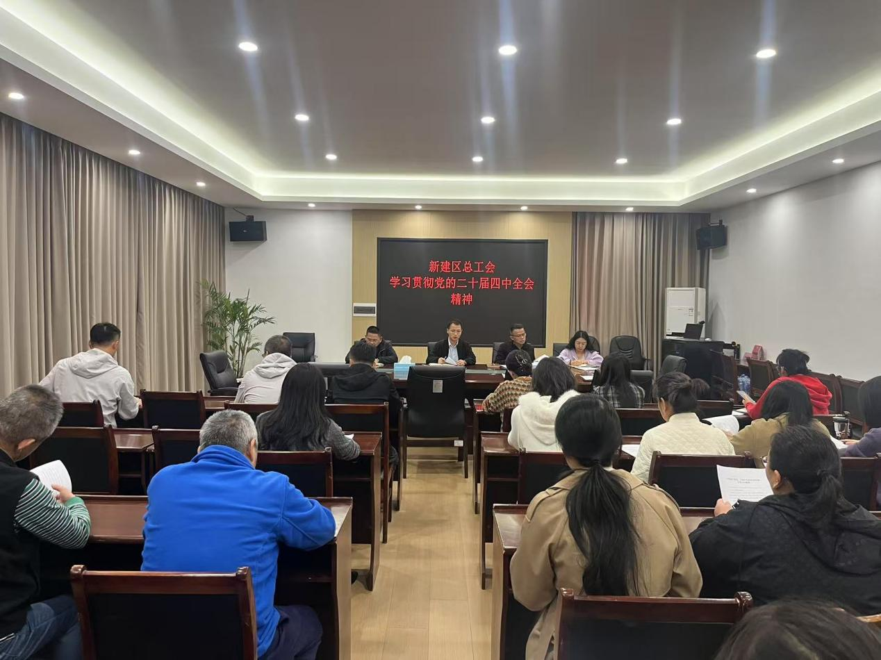 会议原原本本传达学习了党的二十届四中全会公报等内容,传达学习了省委、市委、区委贯彻落实全会精神有关要求,并结合实际,研究了新建区工会系统贯彻落实举措。