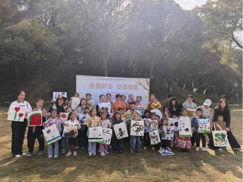 活动以亲子互动为核心,设置自然观察、手工创作、艺术体验等多元环节。在自然观察环节,大家结伴漫步公园,近距离探寻冬日草木的独特形态、聆听林间鸟鸣,在实地观察中感受季节更替的韵律与自然之美;手工创作区里,孩子们在家长的陪伴下,巧用捡拾的落叶、枯枝等自然素材,发挥奇思妙想,制作出一幅幅充满童趣的创意作品,现场洋溢着欢声笑语;小朋友们用画笔在帆布袋上作画,充分发挥想象力,描绘房子、动物、山水、花卉等,原本素净的帆布袋在巧手下变得色彩斑斓,独具匠心。